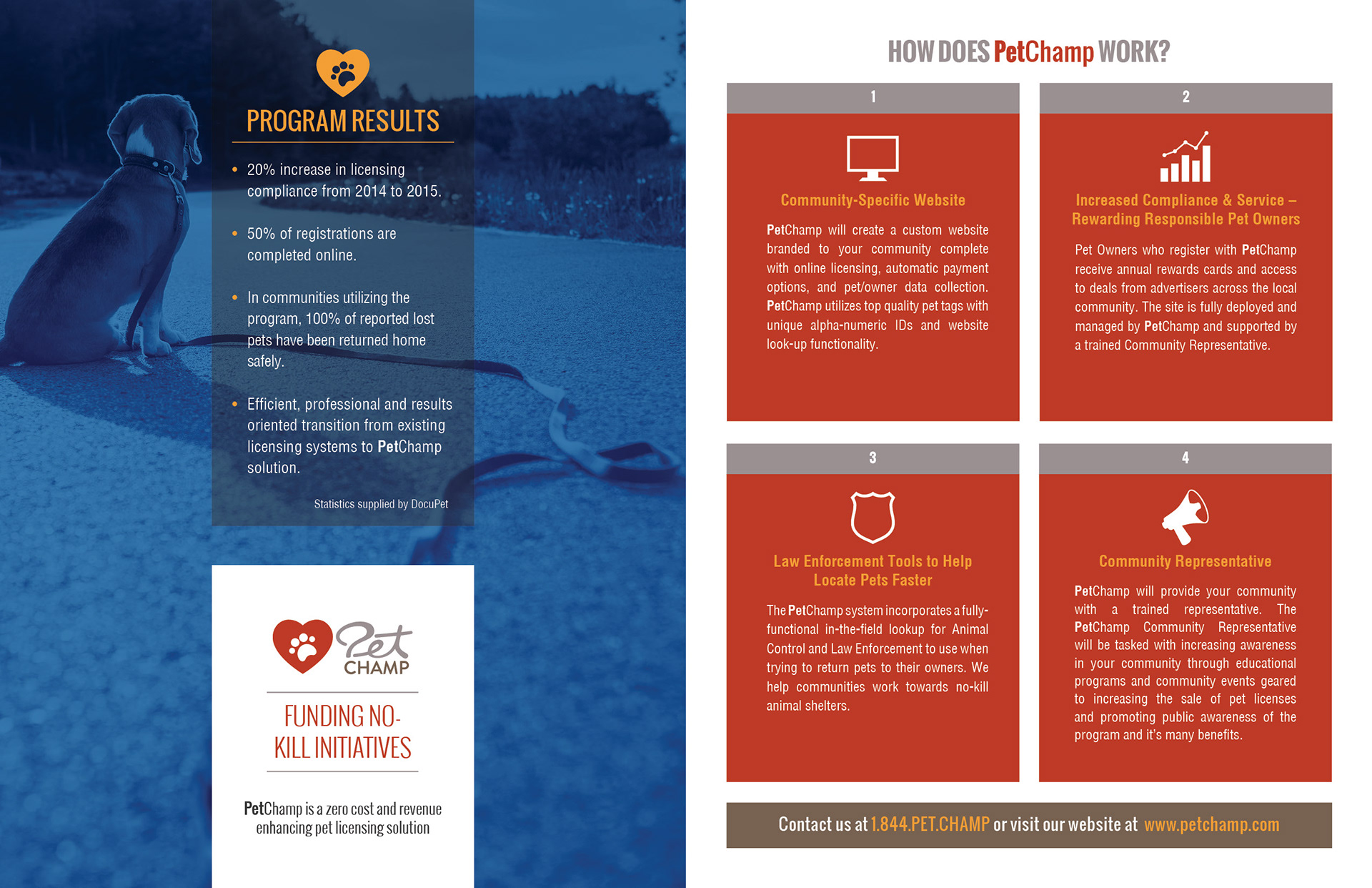 Above: 10x7 Trade show banner for PROChamps. Skills: Graphic Design, Photo Manipulation - Below: 2-Sided bi-fold brochure. Skills: Graphic Design, Illustration, Photo Manipulation