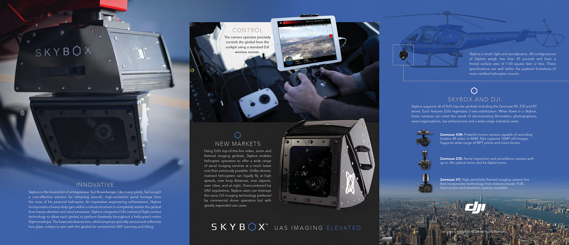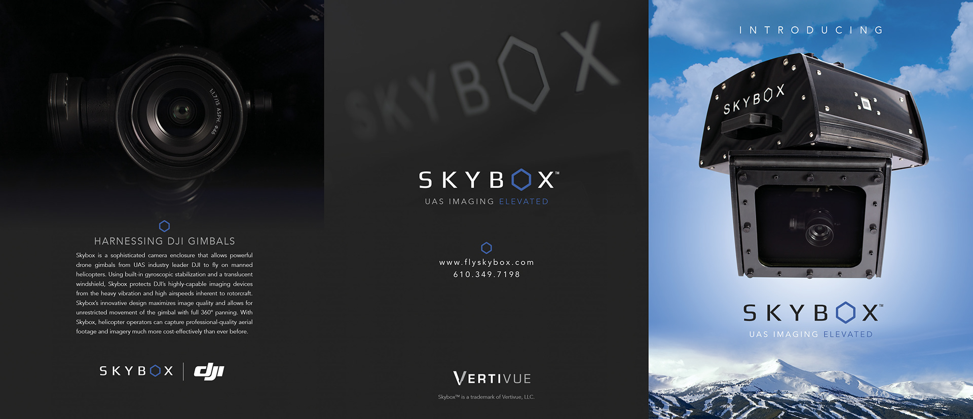 Above: 2-Sided tri-fold brochure layout for Skybox. Skills: Graphic Design, Logo Design, Photography